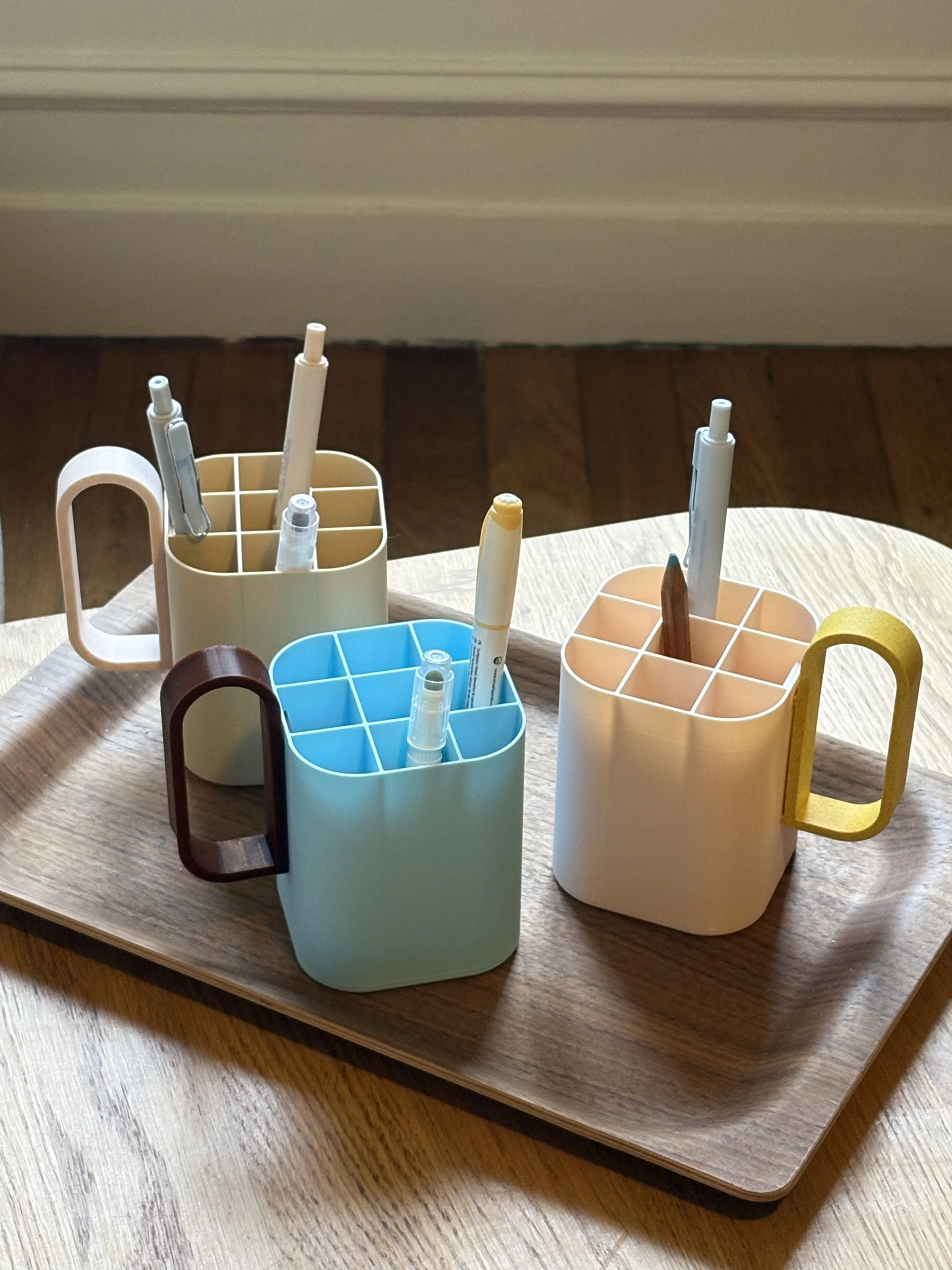 BOUTIQUE › Pot à Crayon Image 1 sur 3 Image 2 sur 3 Image 3 sur 3 Pot à Crayon 15,00 € Contenant au design excentrique pour organiser vos stylos et accessoires de bureau Coloris: Beige / Anse Rose Bleu Glacé / Anse Bordeaux Rose / Anse Jaune Quantité: Ajouter au panier Ajout effectué ! Contenant au design excentrique pour organiser vos stylos et accessoires de bureau DescriptionPot à crayon avec 9 compartimentsAnse pour transporter le pot facilementFabrication Française FAQ Quelles sont les dimensions? Longueur : 10,3 cmLargeur : 7 cmHauteur : 11 cm Avis Nom de l’évaluateur Date de l’évaluation Note (étoiles) Description Publié sur Etsy Produit Afficher plus
